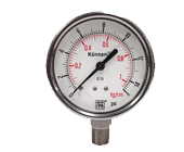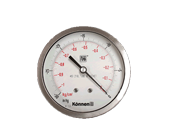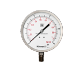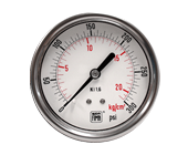 MGS18/A/100 Diametro: 4”(100 mm) Clase: 1% Conexión: Inferior de ½” NPT en inoxidable Internos: Tubo bourdon y mecanismos en AISI 316 Visor: Cristal Templado Rangos Disponibles: (Kg/Cm2-psi) De 0/0,6-75 a 0/2000-30000. Escala de vacuometro (Kg/cm2 - Pulg. Hg) -1 - 30/0. -1 + 15 y -1 + 24 NH3 Apto para baño de glicerina |